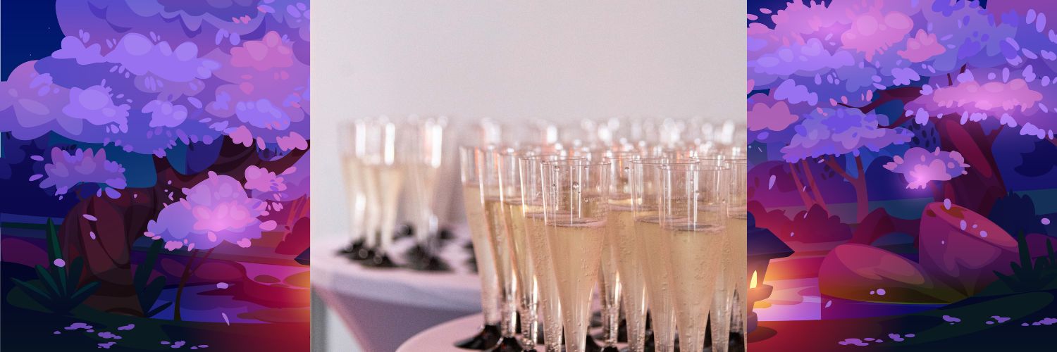 Everyone is given a glass of sparkling wine at the reception.